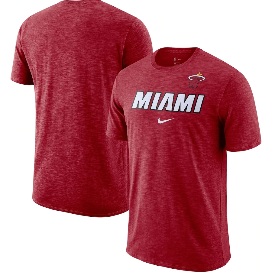 2020 NBA Men Nike Miami Heat Heathered Red Essential Facility Slub Performance TShirt
