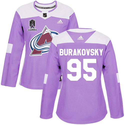 Adidas Colorado Avalanche #95 Andre Burakovsky Purple Women’s 2022 Stanley Cup Champions Authentic Fights Cancer Stitched NHL Jersey Womens