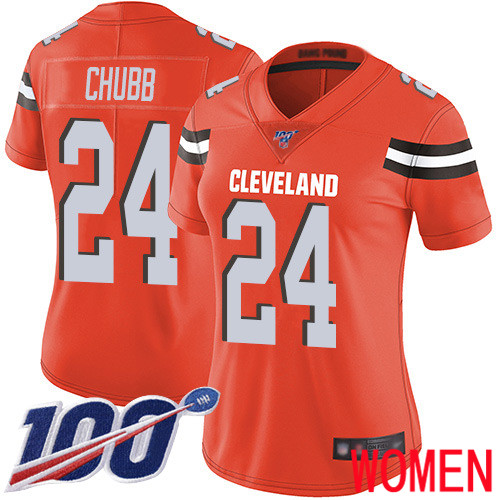 Cleveland Browns Nick Chubb Women Orange Limited Jersey #24 NFL Football Alternate 100th Season Vapor Untouchable