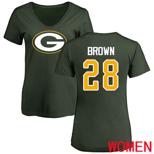 - Green Bay Packers Green Women #28 Brown Tony Name And Number Logo Nike NFL T Shirt