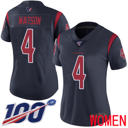 Houston Texans Limited Navy Blue Women Deshaun Watson Jersey NFL Football #4 100th Season Rush Vapor Untouchable