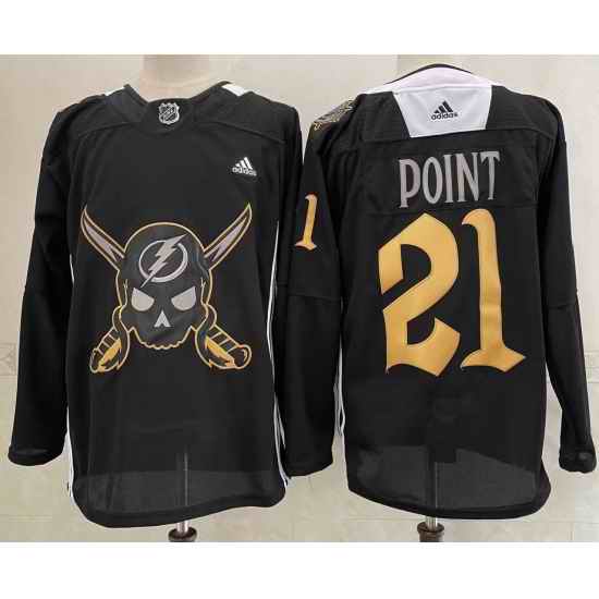 Men's Tampa Bay Lightning #21 Brayden Point Black Pirate Themed Warmup Authentic Jersey