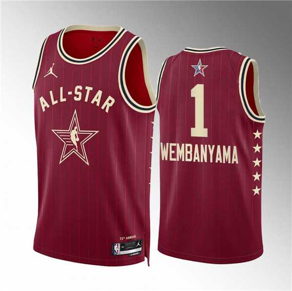 Men's 2024 All-Star #1 Victor Wembanyama Crimson Stitched Basketball Jersey