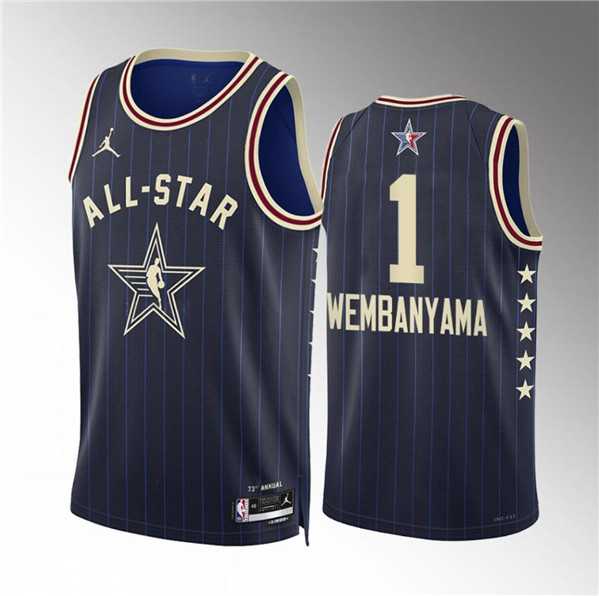Men's 2024 All-Star #1 Victor Wembanyama Navy Stitched Basketball Jersey