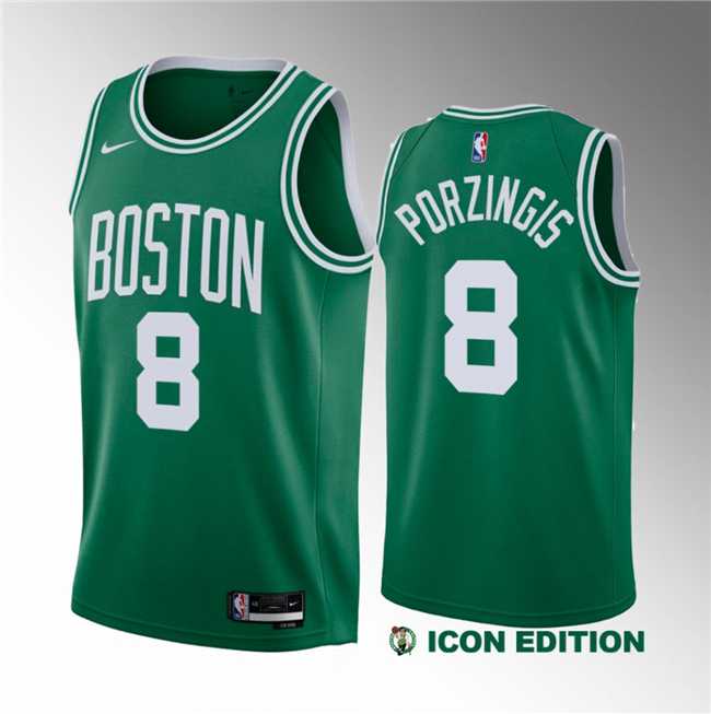 Men's Boston Celtics #8 Kristaps Porzingis Green 2023 Draft Icon Edition Stitched Basketball Jersey Dzhi