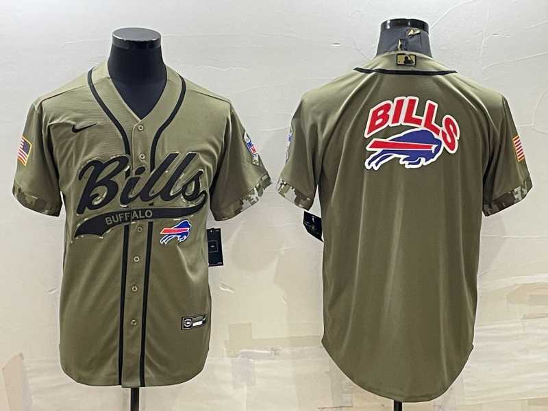 Men's Buffalo Bills Olive Salute to Service Team Big Logo Cool Base Stitched Baseball Jersey