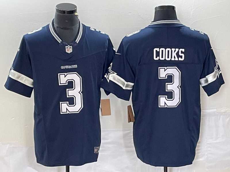 Men's Dallas Cowboys #3 Brandin Cooks Navy Blue 2023 FUSE Vapor Stitched Jersey