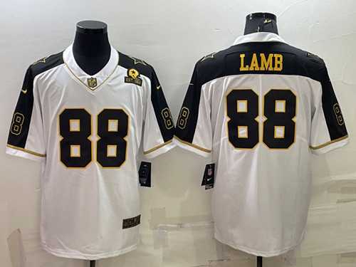 Men's Dallas Cowboys #88 CeeDee Lamb White Gold Edition With 1960 Patch Limited Stitched Football Jersey