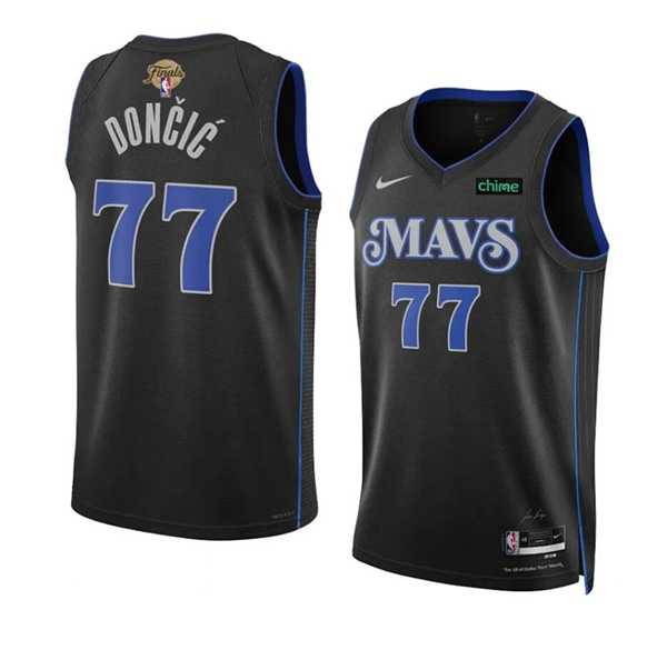 Men's Dallas Mavericks #77 Luka Doncic Black 2024 Finals City Edition Stitched Basketball Jersey Dzhi