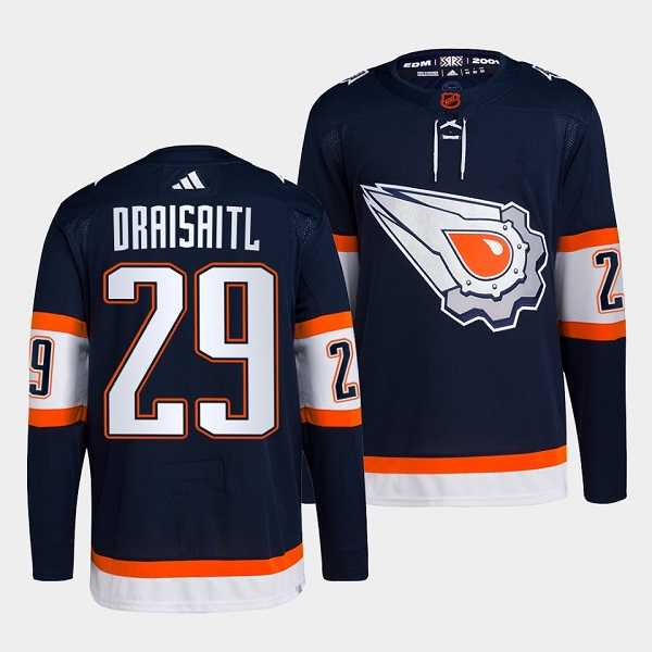 Men's Edmonton Oilers #29 Leon Draisaitl Navy 2022-23 Reverse Retro Stitched Jersey