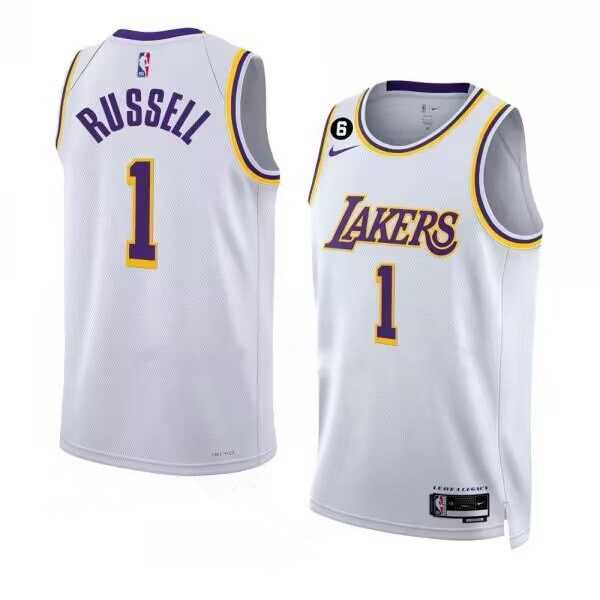 Men's Los Angeles Lakers #1 D'Angelo Russell 2022-23 White With NO.6 Patch Association Edition Swingman Stitched Basketball Jersey Dzhi