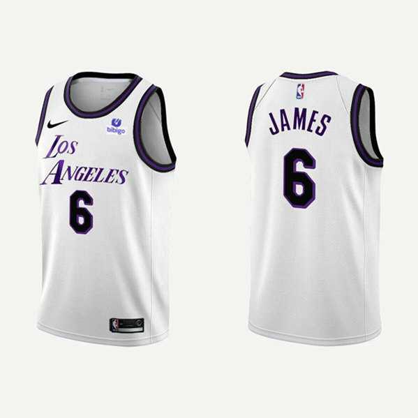 Men's Los Angeles Lakers #6 LeBron James 2022-23 White Stitched Basketball Jersey Dzhi