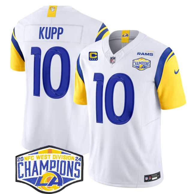 Men's Los Angeles Rams #10 Cooper Kupp White 2024 NFC West Champions With 4-Star C Patch F.U.S.E. Vapor Untouchable Stitched Jersey