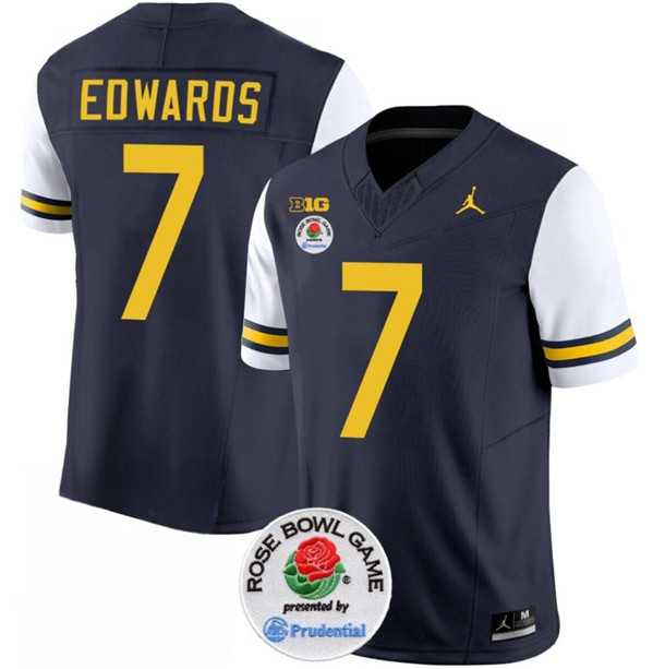 Men's Michigan Wolverines #7 Donovan Edwards 2023 F.U.S.E. Navy White Rose Bowl Patch Stitched Jersey Dzhi