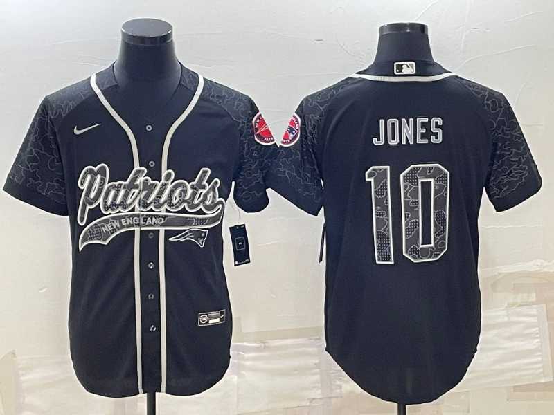 Men's New England Patriots #10 Mac Jones Black Reflective With Patch Cool Base Stitched Baseball Jersey