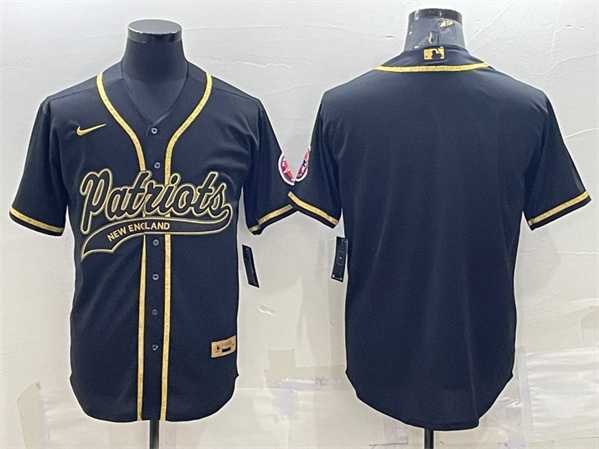 Men's New England Patriots Blank Black Gold With Patch Cool Base Stitched Baseball Jersey