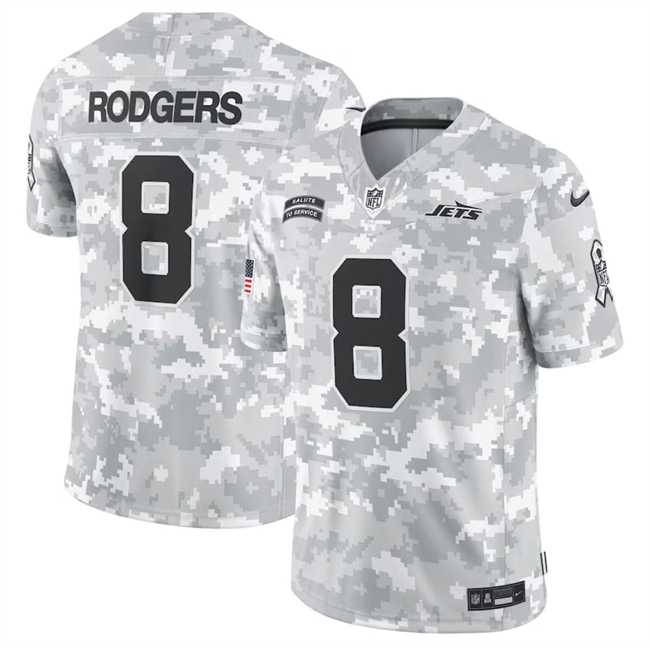 Men's New York Jets #8 Aaron Rodgers 2024 Arctic Camo Salute To Service Limited Stitched Jersey Dyin
