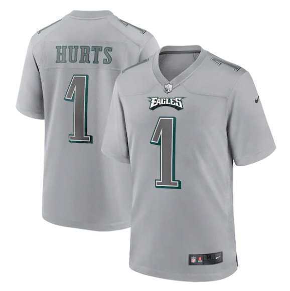 Men's Philadelphia Eagles #1 Jalen Hurts Gray Atmosphere Fashion Stitched Game Jersey Dzhi