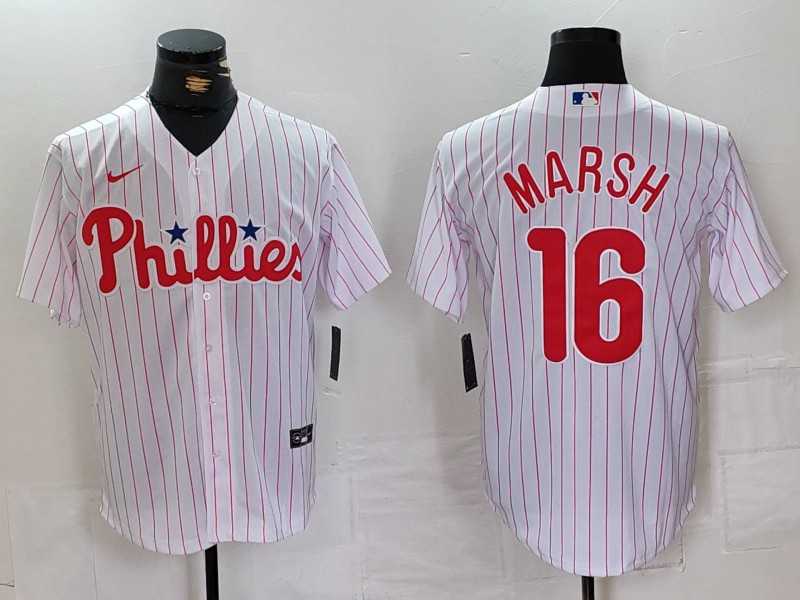Men's Philadelphia Phillies #16 Brandon Marsh White Pinstripe Stitched Cool Base Jersey