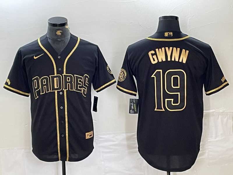 Men's San Diego Padres #19 Tony Gwynn Black Gold Cool Base Jersey