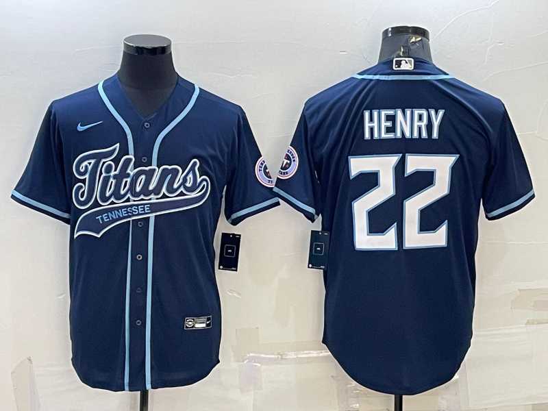 Men's Tennessee Titans #22 Derrick Henry Navy With Patch Cool Base Stitched Baseball Jersey