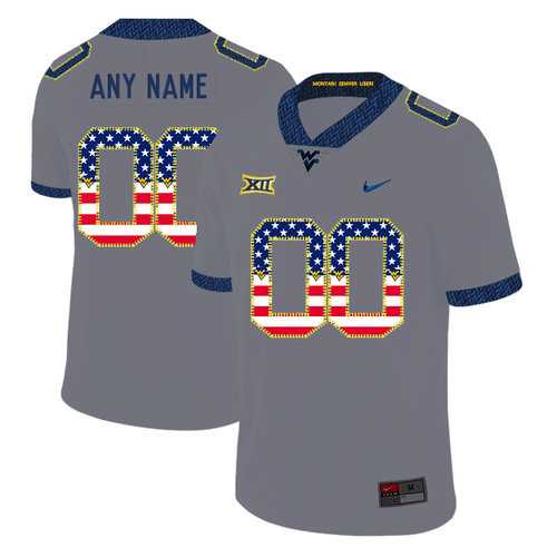 Men's West Virginia Mountaineers Customized Gray USA Flag College Football Jersey
