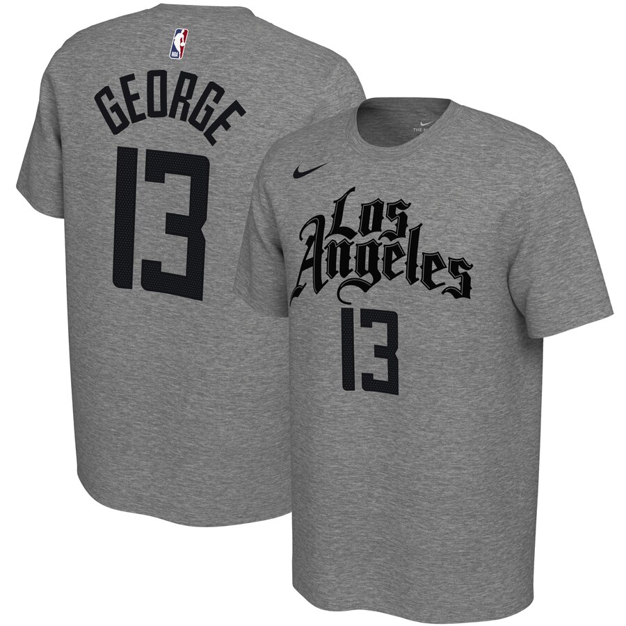 - Men 2020 NBA Nike Paul George LA Clippers Gray 201920 City Edition Variant Name Number TShirt.