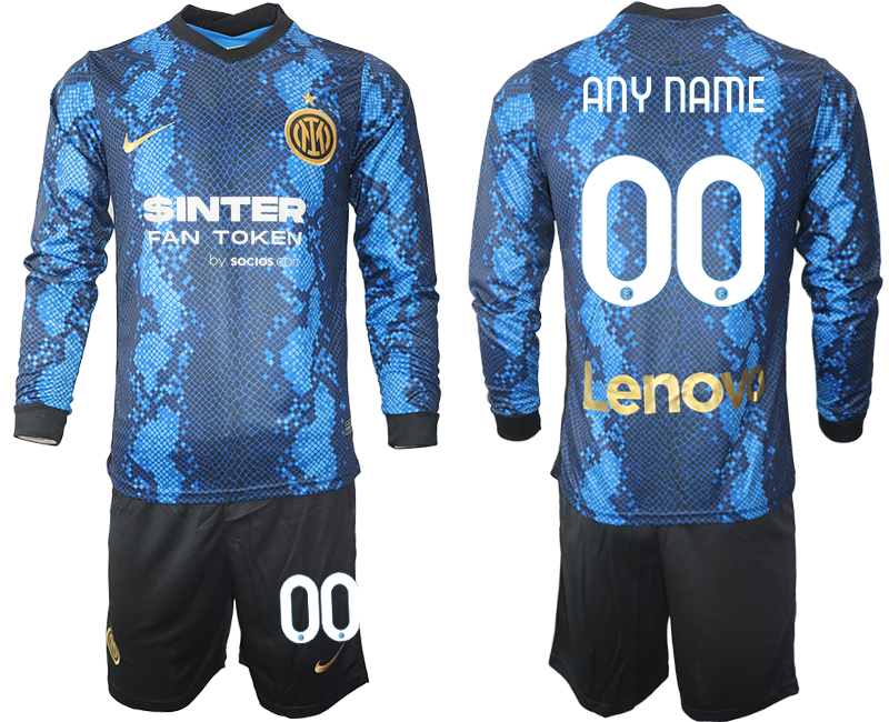 Men 2021-2022 Club Inter Milan home blue Long Sleeve customized Soccer Jersey