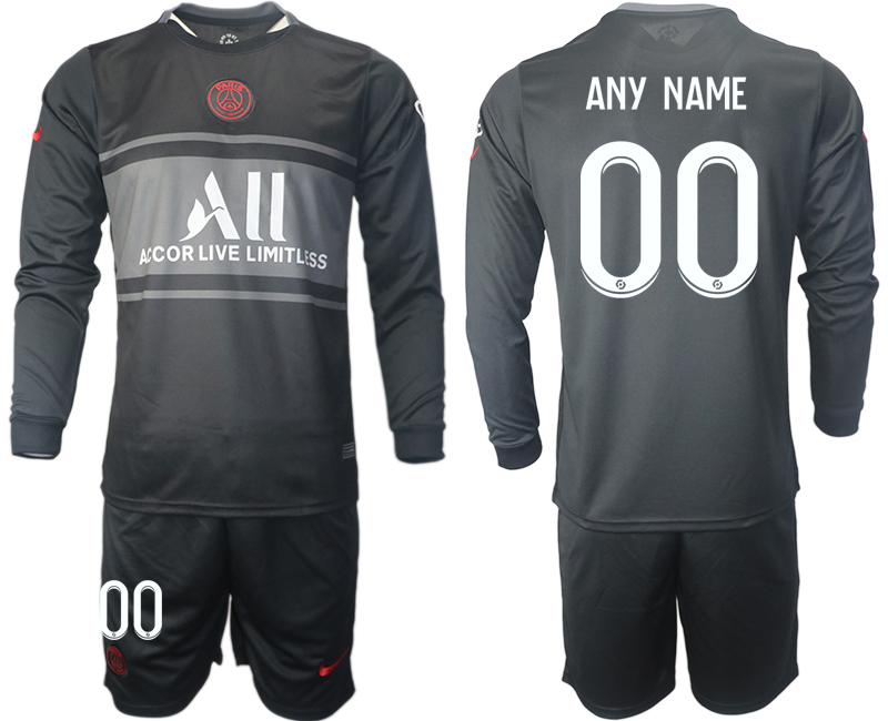 Men 2021-2022 Club Paris St German Second away black Long Sleeve customized Soccer Jersey