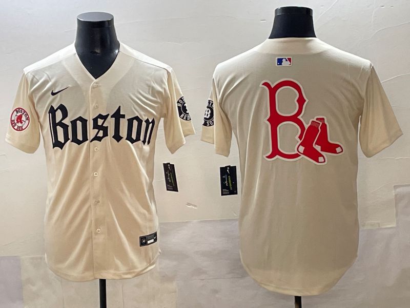Men 2025 Boston Red Sox Blank Cream Five generations Joint Name Nike MLB Jersey style 6