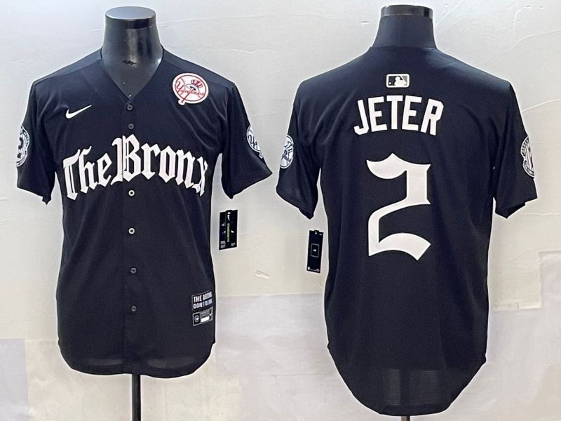 Men 2025 New York Yankees #2 Jeter Black Five generations Joint Name Nike MLB Jersey style 5