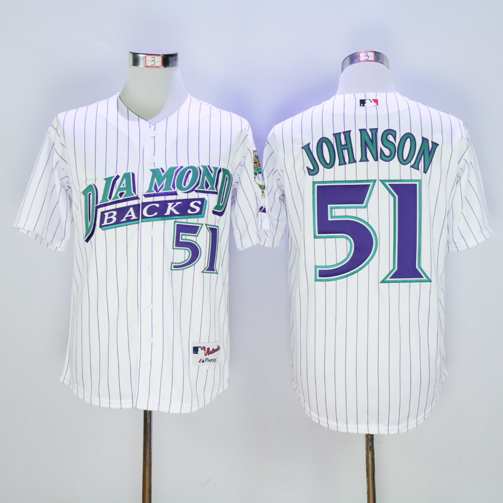Men Arizona Diamondback #51 Johnson White Stripe 1999 MLB Jerseys