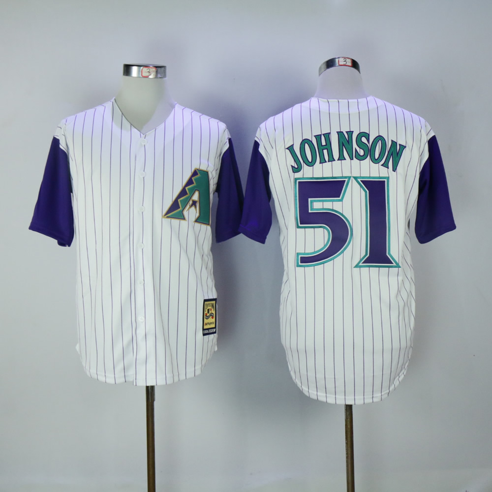 Men Arizona Diamondback #51 Johnson White Stripe MLB Jerseys