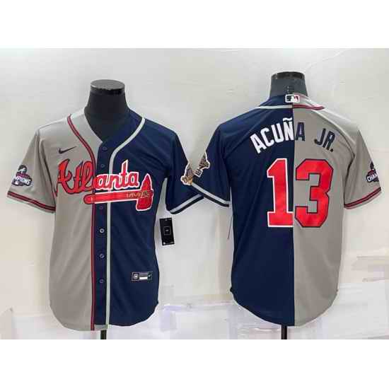 Men Atlanta Braves #13 Ronald Acuna Jr Gray Navy Two Tone Split Cool Base Stitched Baseball Jersey