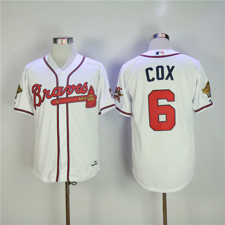 Men Atlanta Braves #6 Cox White Throwback 1995 MLB Jerseys