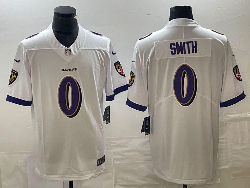 Men Baltimore Ravens #0 Smith Whitte 2023 Nike Vapor Limited NFL Jersey