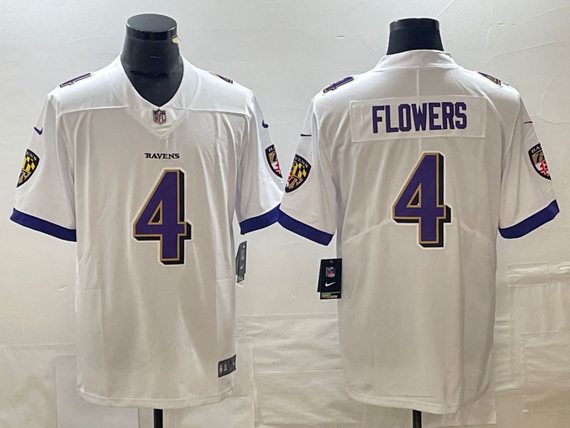 Men Baltimore Ravens #4 Flowers Whitte 2023 Nike Vapor Limited NFL Jersey