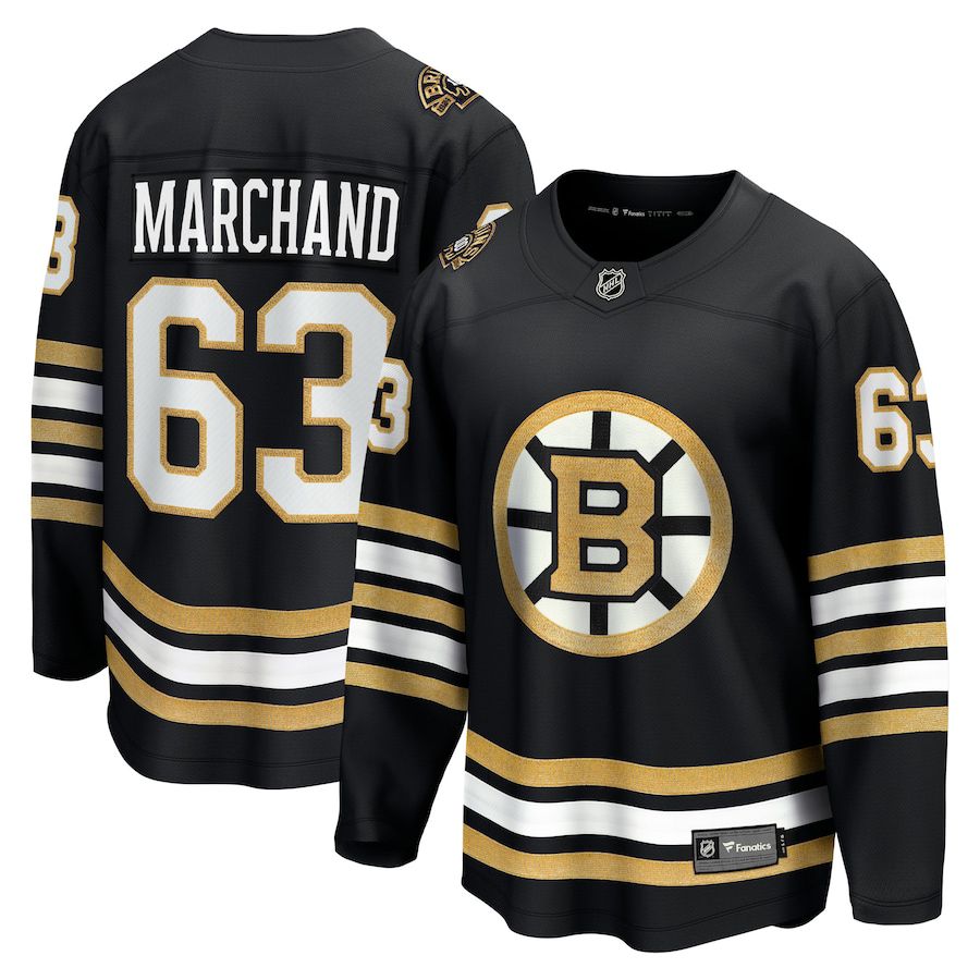 Men Boston Bruins #63 Brad Marchand Fanatics Branded Black 100th Anniversary Premier Breakaway Player NHL Jersey