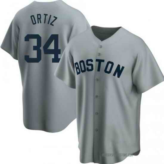 Men Boston Red Sox David Ortiz Gray Replica Road Cooperstown Collection Player Jersey