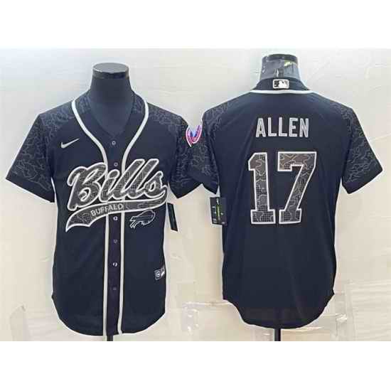 Men Buffalo Bills #17 Josh Allen Black Reflective With Patch Cool Base Stitched Baseball Jersey