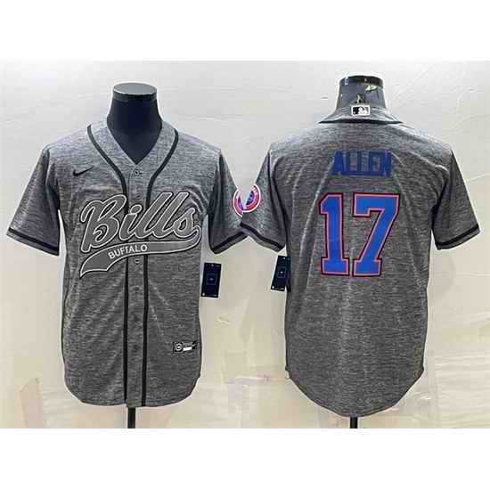 Men Buffalo Bills #17 Josh Allen Grey With Patch Cool Base Stitched Baseball Jersey