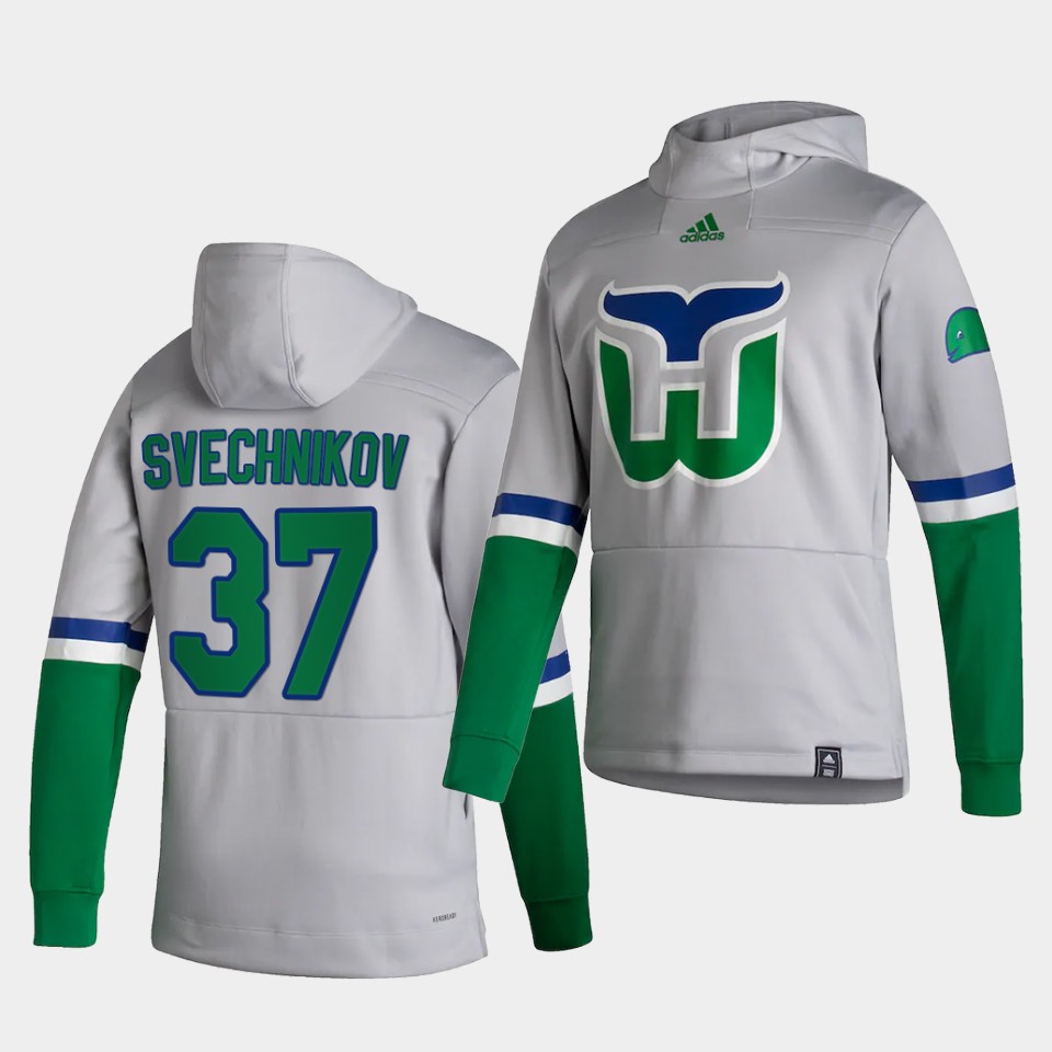 Men Carolina Hurricanes #37 Svechnikov White NHL 2021 Adidas Pullover Hoodie Jersey