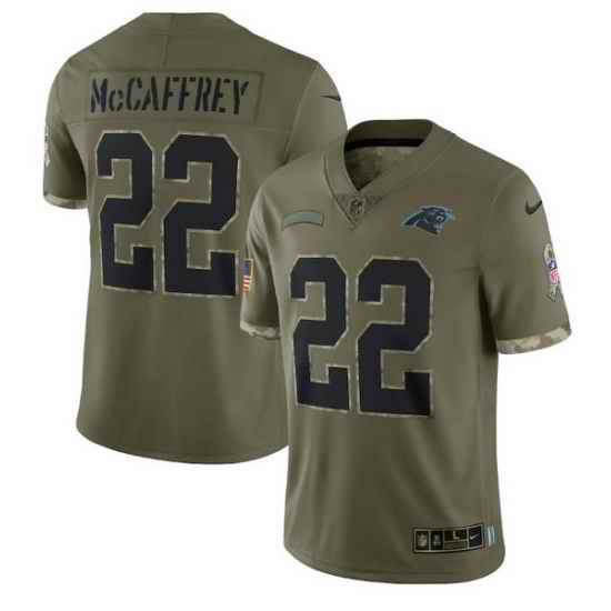 Men Carolina Panthers #22 Christian McCaffrey Olive 2022 Salute To Service Limited Stitched Jersey