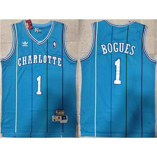 Men Charlotte Hornets #1 Muggsy Bogues Blue Mitchell 26 Ness Throwback Stitched Jersey