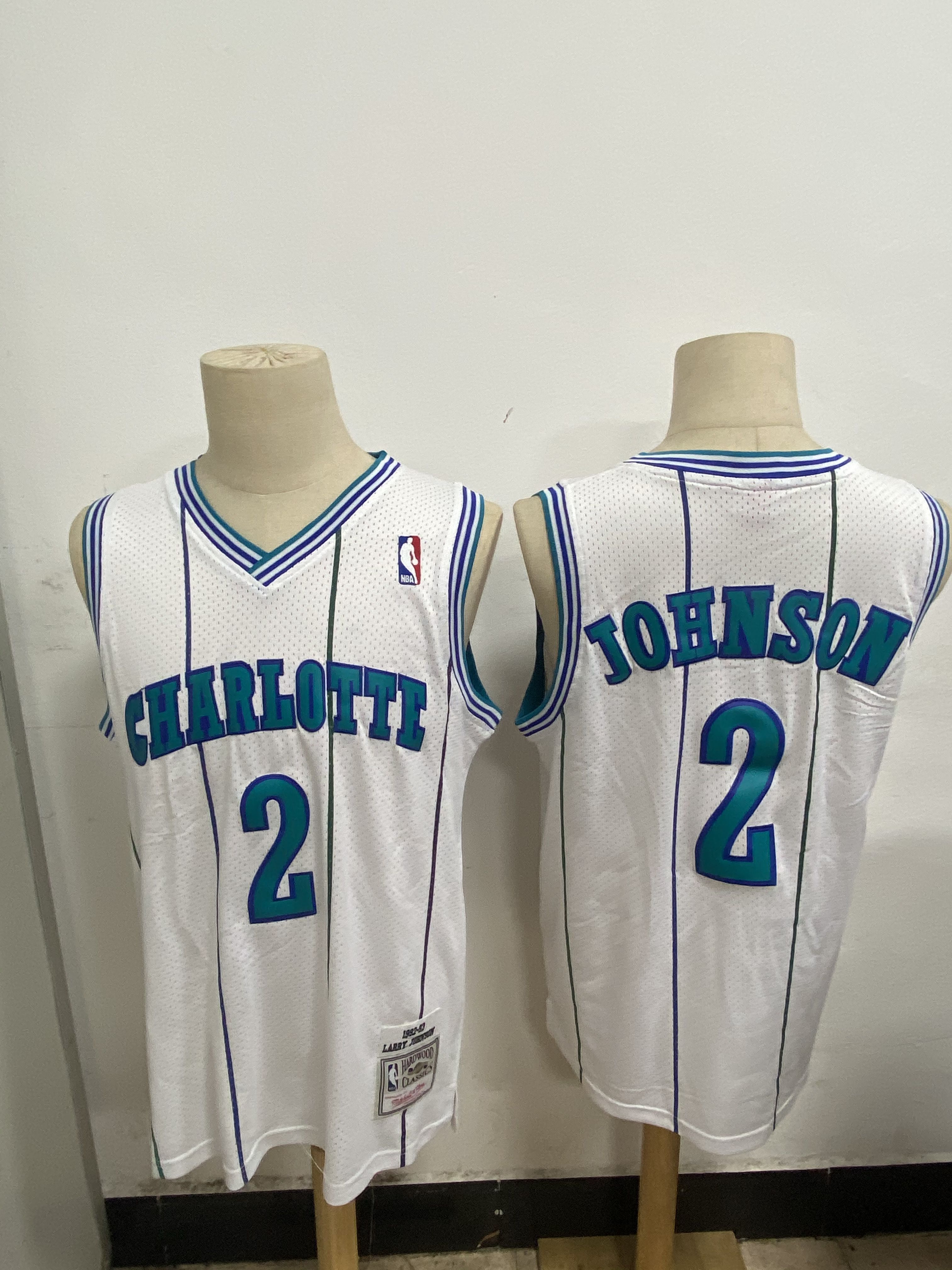 Men Charlotte Hornets #2 Johnson White Throwback NBA Jerseys