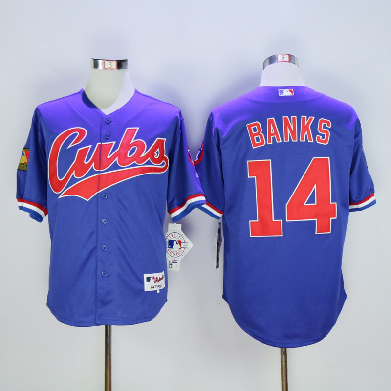 Men Chicago Cubs #14 Banks Blue Throwback 1994 MLB Jerseys