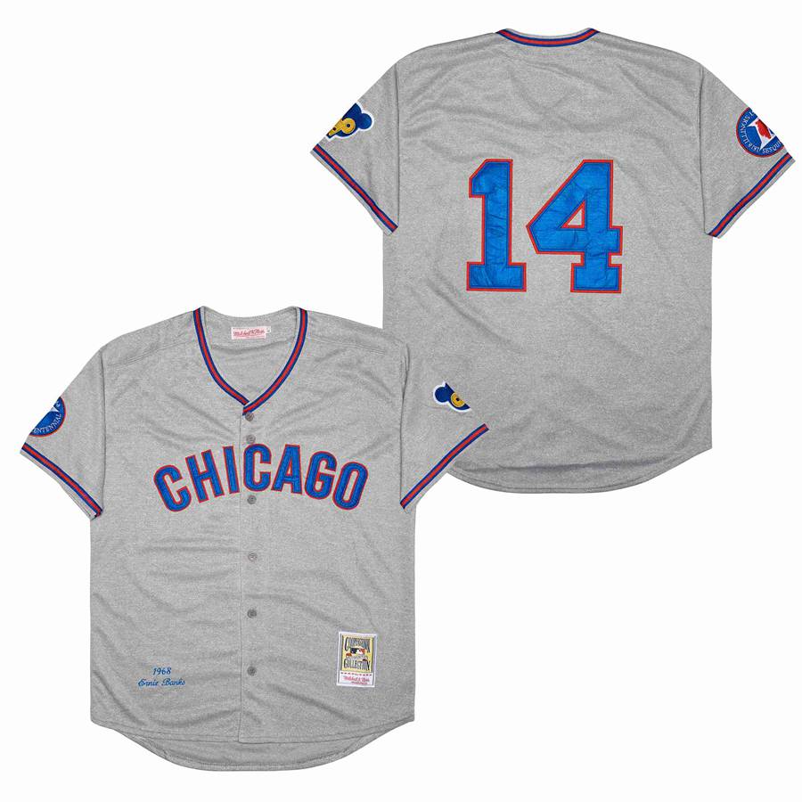 Men Chicago Cubs #14 Banks Grey 1968 Throwback MLB Jerseys