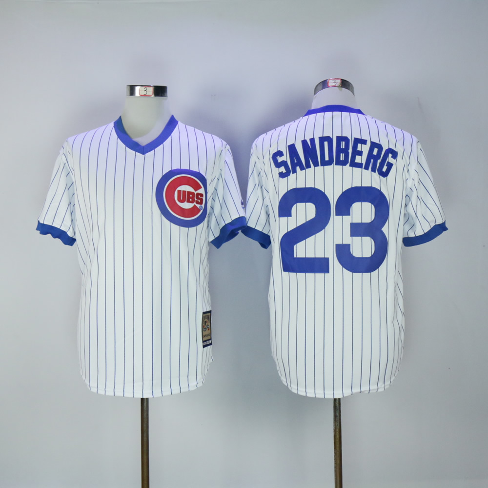 Men Chicago Cubs #23 Sandberg White Throwback Game MLB Jerseys