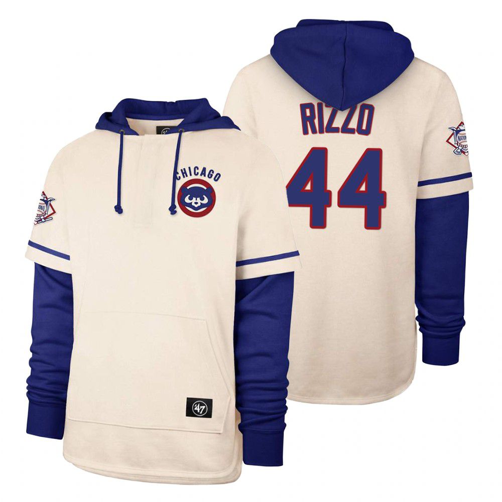 Men Chicago Cubs #44 Rizzo Cream 2021 Pullover Hoodie MLB Jersey