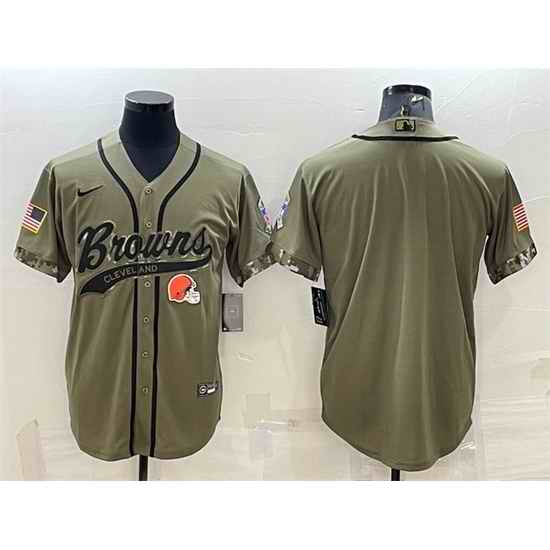 Men Cleveland Browns Blank Olive 2022 Salute To Service Cool Base Stitched Baseball Jersey